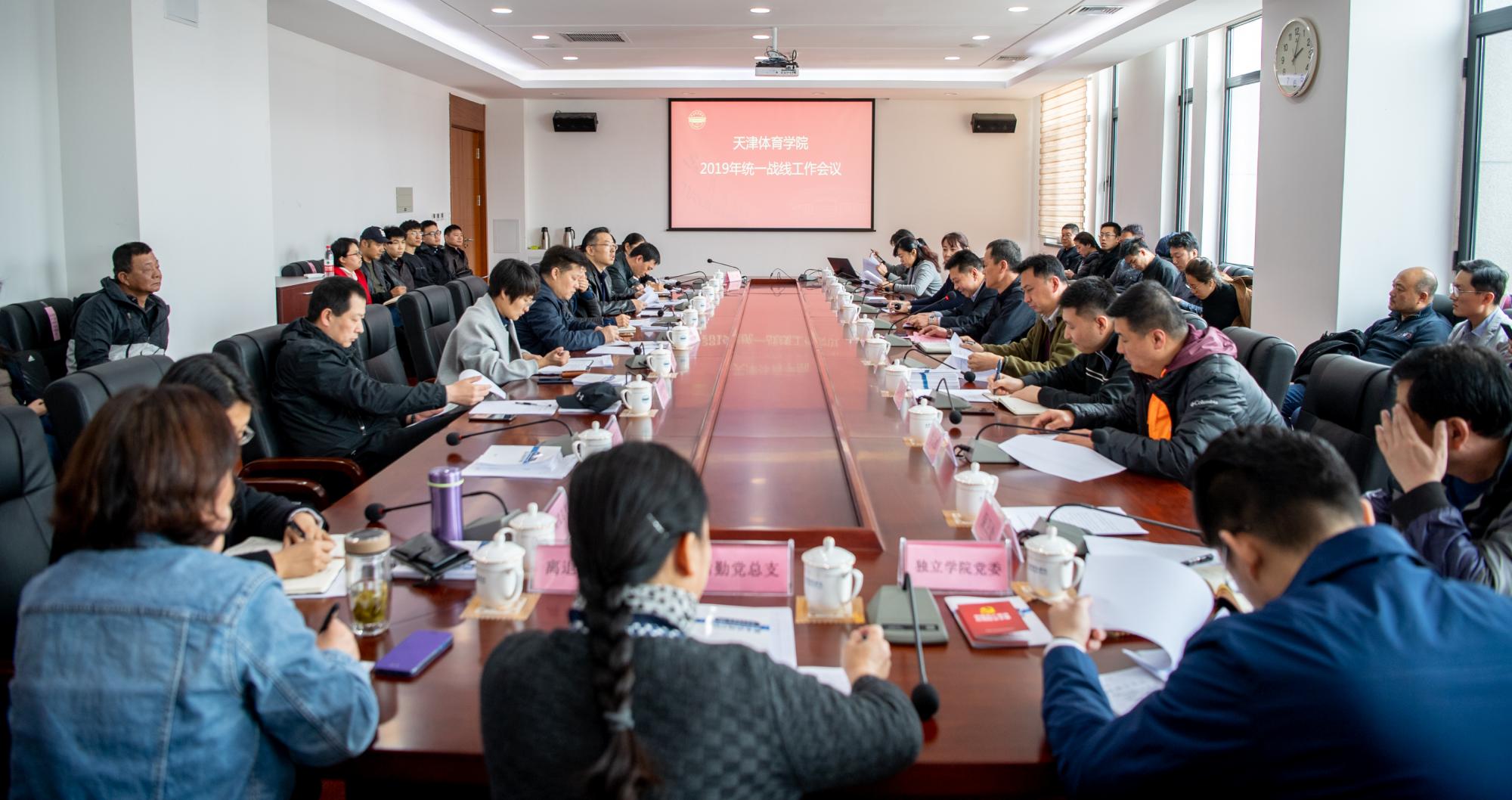 会上,党委统战部部长依惠琴总结了2018年统一战线工作,对2019年统一战线工作进行了部署。张立顺宣读了《关于表彰天津体育学院民族团结进步模范集体、模范个人的决定》,并为民族团结进步模范集体和模范个人颁奖。王欢为2018年度天津市统战理论研究创新成果三等奖获得者、马克思主义学院教师张晓东颁奖。民族团结进步模范个人代表孙庆国、钱长浩、马洁分别作了交流发言。民革天津体育学院支部主委黄力平、民盟天津体育学院支部主委王旭光、知联会会长王慧琳分别介绍了2019年工作计划。